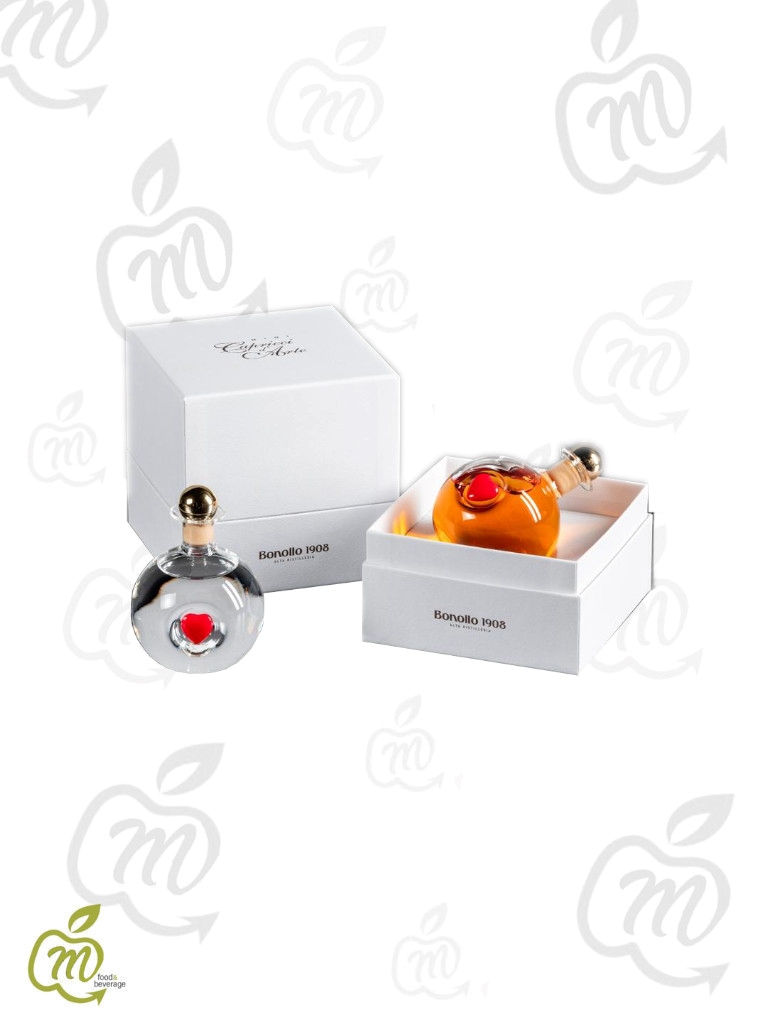 Bonollo Elisir d'Amor una confezione che racchiude nobiltà, equilibrio e intensità, emblema della perfetta fusione tra il carattere vigoroso della grappa Bonollo e la purezza cristallina dello stile Bonollo: un "elisir d'amor” per luminosità, armonia e pr