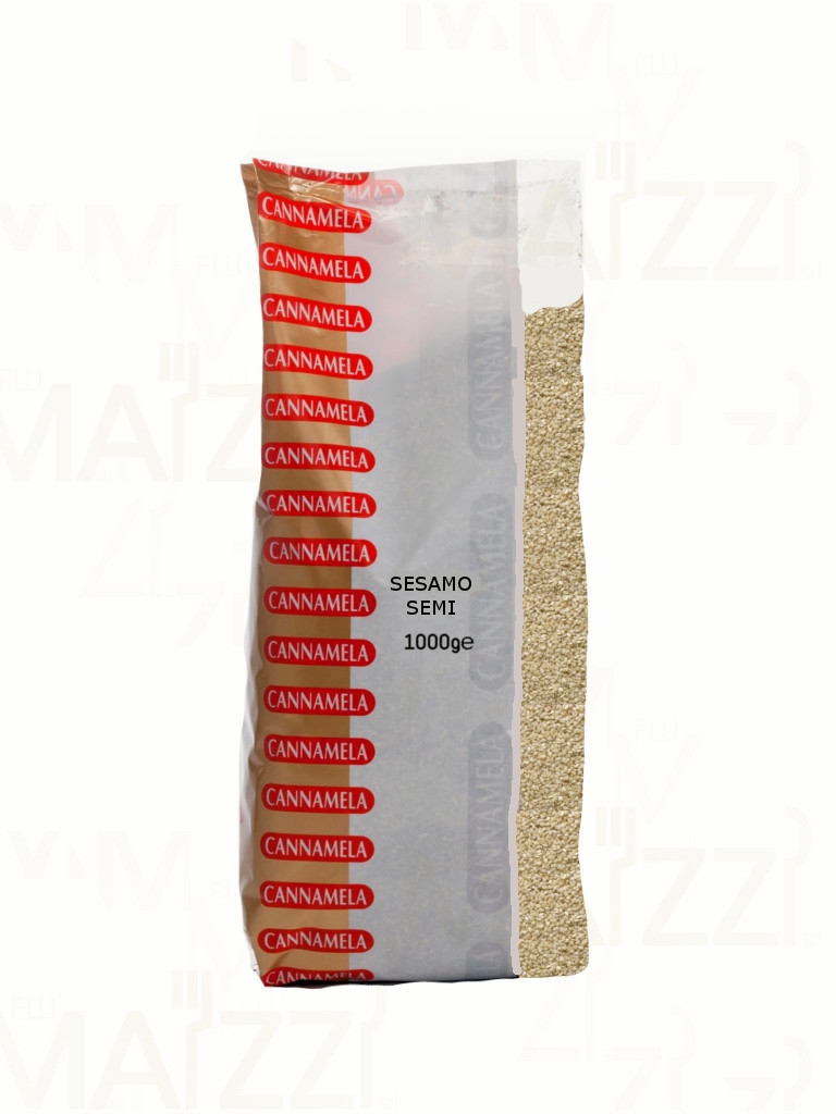 Sesamo semi di Cannamela: Pianta erbacea, con foglie lunghe e a forma di lancia e fiori bianchi e vagamente cilindrici. Ideale per pane, grissini, dolci da forno, carne bianca e preparazioni orientali come uramaki.