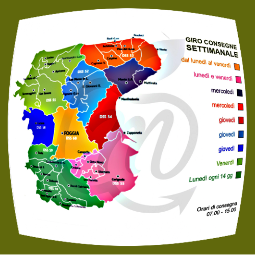 Dal lunedì al venerdì dalle ore 07.00 alle ore 15.00, per la città di Foggia il servizio è giornaliero. La merce è spedita in conto proprio.