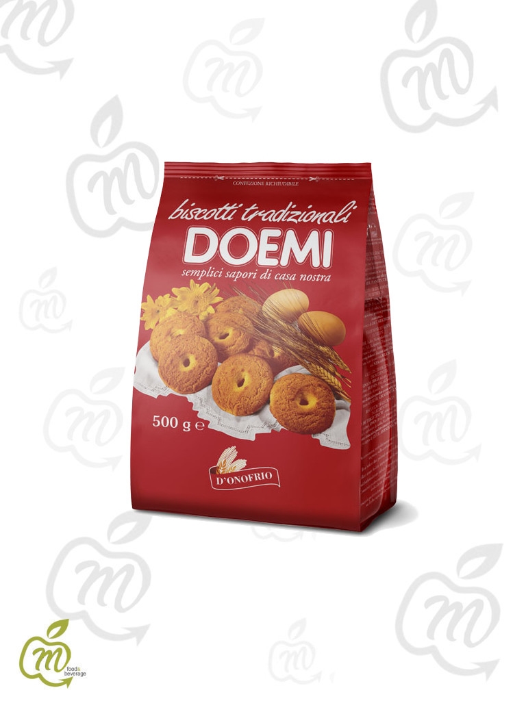 BISCOTTI TRADIZIONALIFarina di GRANO tenero tipo”0”, zucchero, grassi vegetali non idrogenati (palma), UOVA (8%), sale, agenti lievitanti: difosfato disodico, carbonato acido di sodio, bicarbonato d’ammonio.
