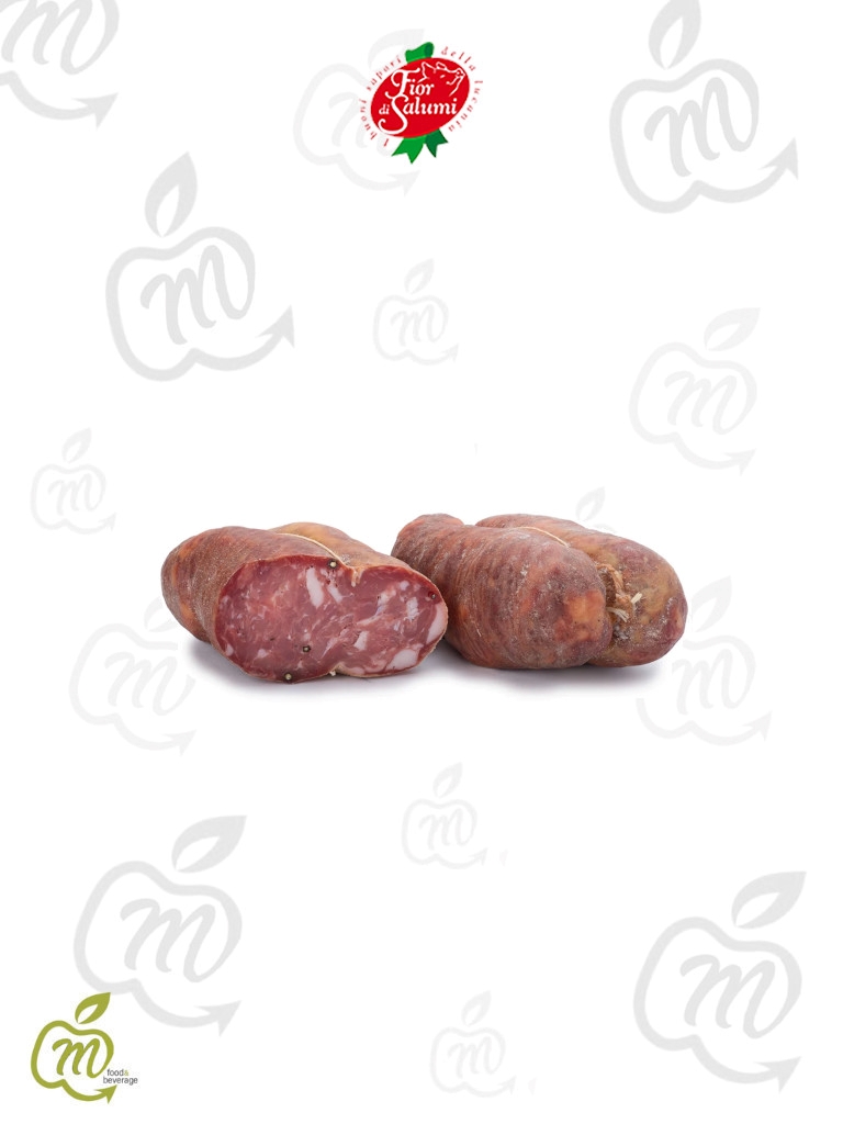 SOPPRESSATA DOLCE un salume tipico viene prodotto utilizzando carne suina preferendo parti nobili . La carne viene arricchita dal pepe nero il tutto insaccato in budello naturale del maiale.