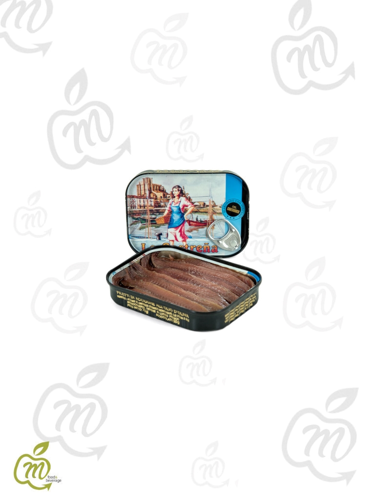 Acciughe del mar Cantabrico della specie Engraulis Encrasicolus. Le acciughe si pescano in primavera con il sistema dell’accerchiamento e si preparano artigianalmente per il loro consumo, si toglie la pelle e le squame e si separa la polpa dalla spina cen