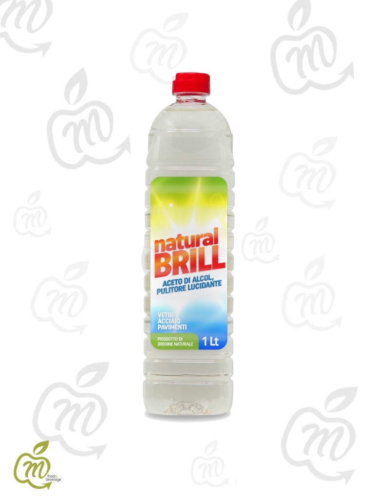 Aceto Multiuso Natural Brill, aceto di alcol , in confezione da 1 litro. Prodotto di origine naturale. Specifico per la pulizia delle superfici in acciaio inox, finestre, vetri, cristalli, specchi e per la pulizia di superfici metalliche lucide.