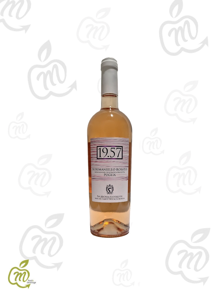 Il Susumaniello Rosato 19.57, dal bel colore cerasuolo tenue, ha sentori di frutti rossi e petali di rosa, con note di vaniglia. Equilibrato e fresco, ha buona struttura e un sapore delicato, asciutto, gradevole che ricorda il ribes e il lampone. Si abbin
